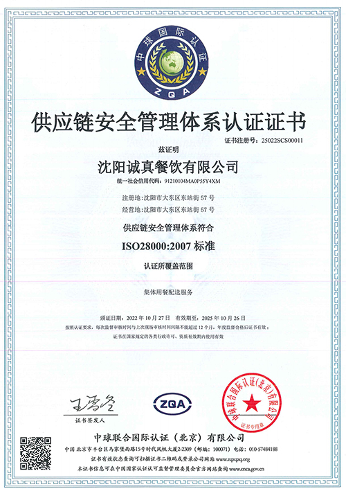 食品安全管理體系認證證書